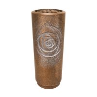 Ambachtelijk gegoten, hoogwaardig bronzen vaas met roos detail, ter verfraaiing van het grafmonument. Geschikt...
