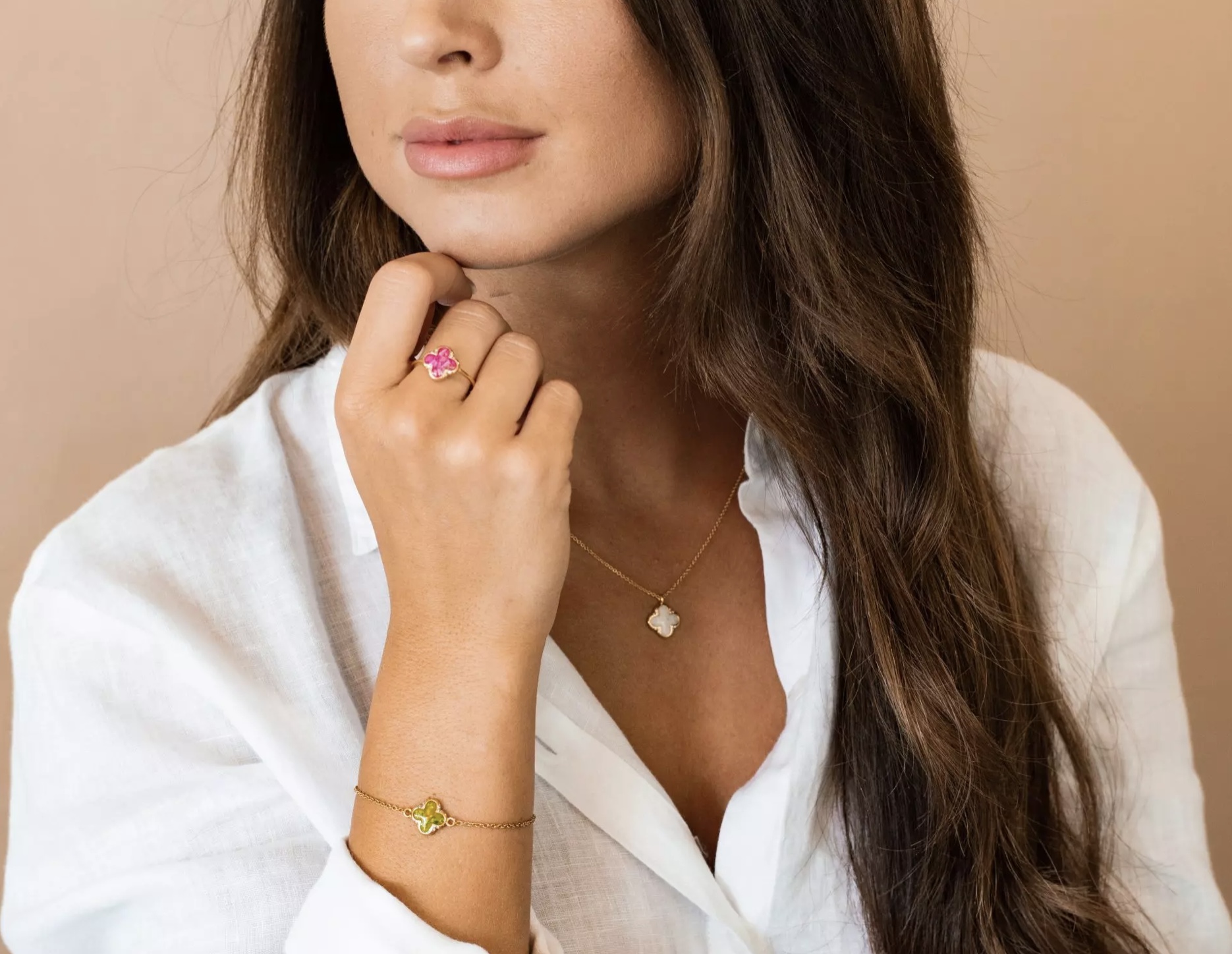 Deze armband is heel mooi om te combineren met de bijpassende ring of collier.