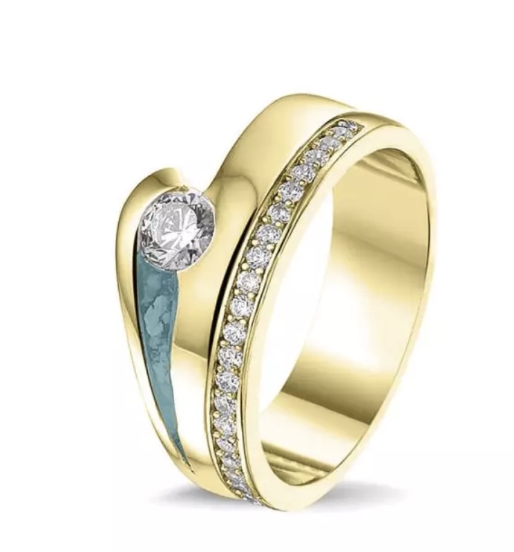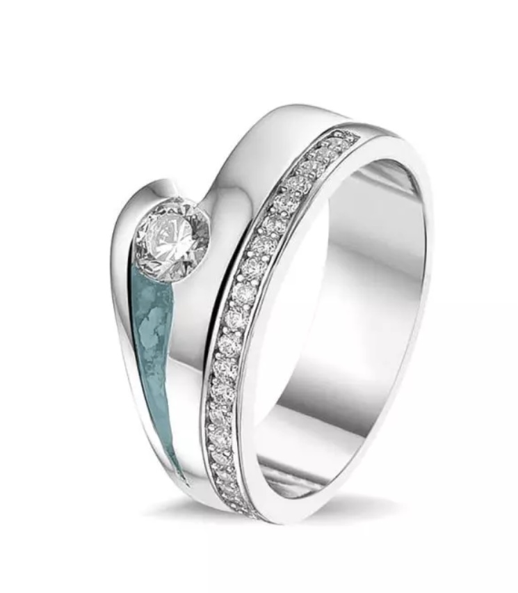 Offerte aanvraag » Bewaar monumentZilveren ring met zirkonia. Dit sieraad wordt zichtbaar aan de voorzijde gevuld met as en wordt vermengd met speciale hars in de door u gewenste kleur.