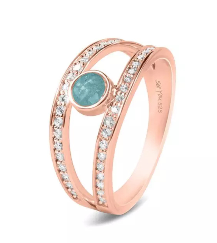 Offerte aanvraag » Bewaar monumentZilveren ring met zirkonia. Dit sieraad wordt zichtbaar aan de voorzijde gevuld met as en wordt vermengd met speciale hars in de door u gewenste kleur.