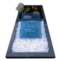 Zeer stijlvol vormgegeven grafmonument, waarbij meerdere materialen op unieke wijze zijn gecombineerd....