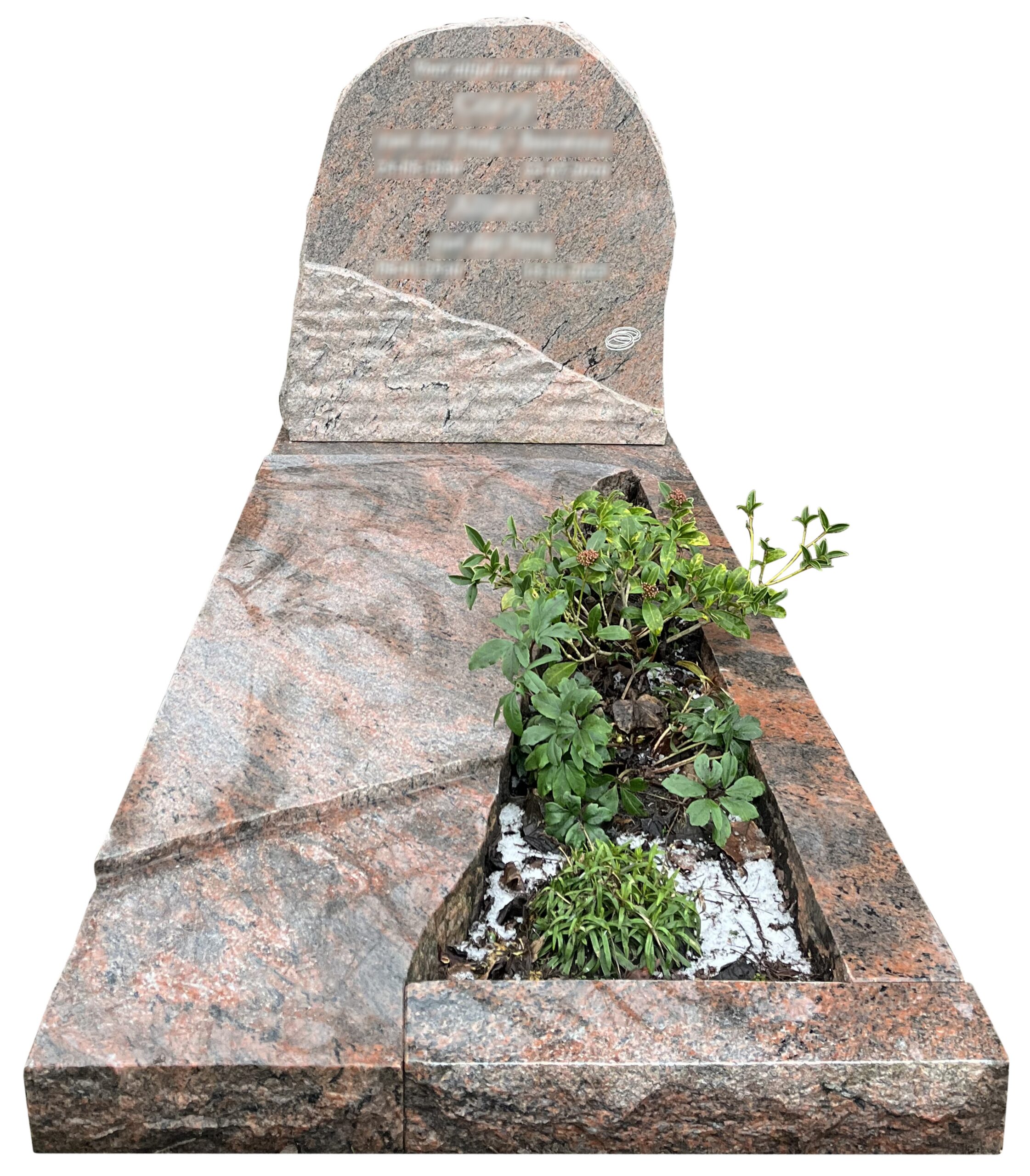 Mooi eigentijds monument met opliggende ruwe gedeeltes in Multi Color Red graniet. Dit monument is mogelijk in de door u gewenste granietkleur.