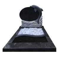 Fraai grafmonument waarbij op de letterplaat een dolfijn is uitbehakt. In het liggende...