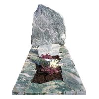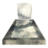 Monument uitgevoerd in Pearl White graniet, waarvan één letterplaat in glas is...