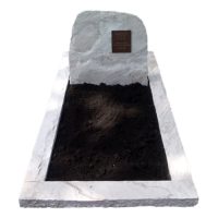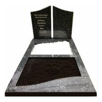 Stijlvol monument met twee gelijkwaardige letterplaten. De voorband heeft een golvende vorm...