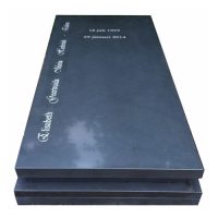 Klassieke zerk van gezoet zwart graniet, waarin de tekst verticaal en horizontaal...