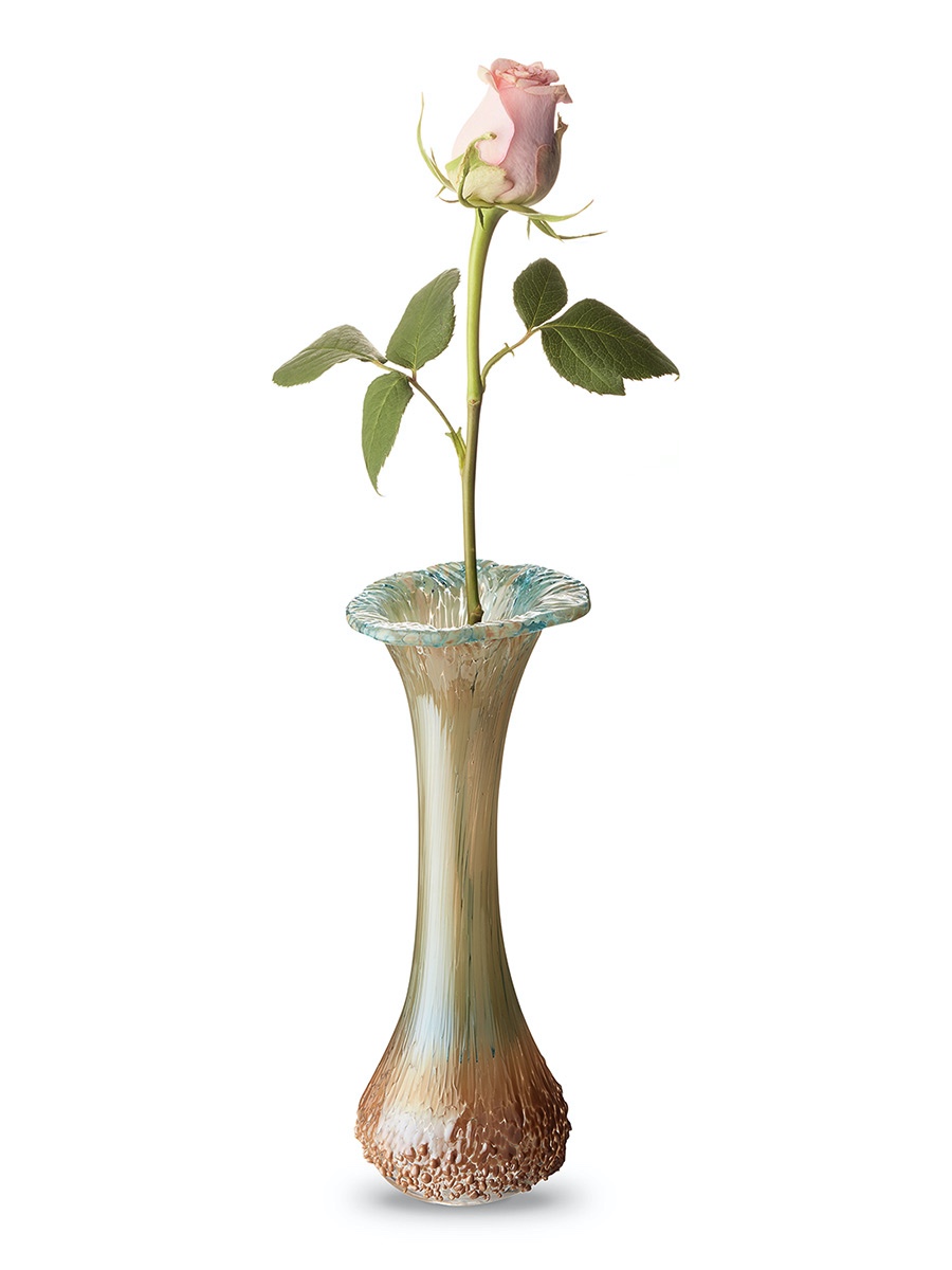 Het vaasje is verkrijgbaar in 2 kleuren: blue-taupe en roze-taupe.