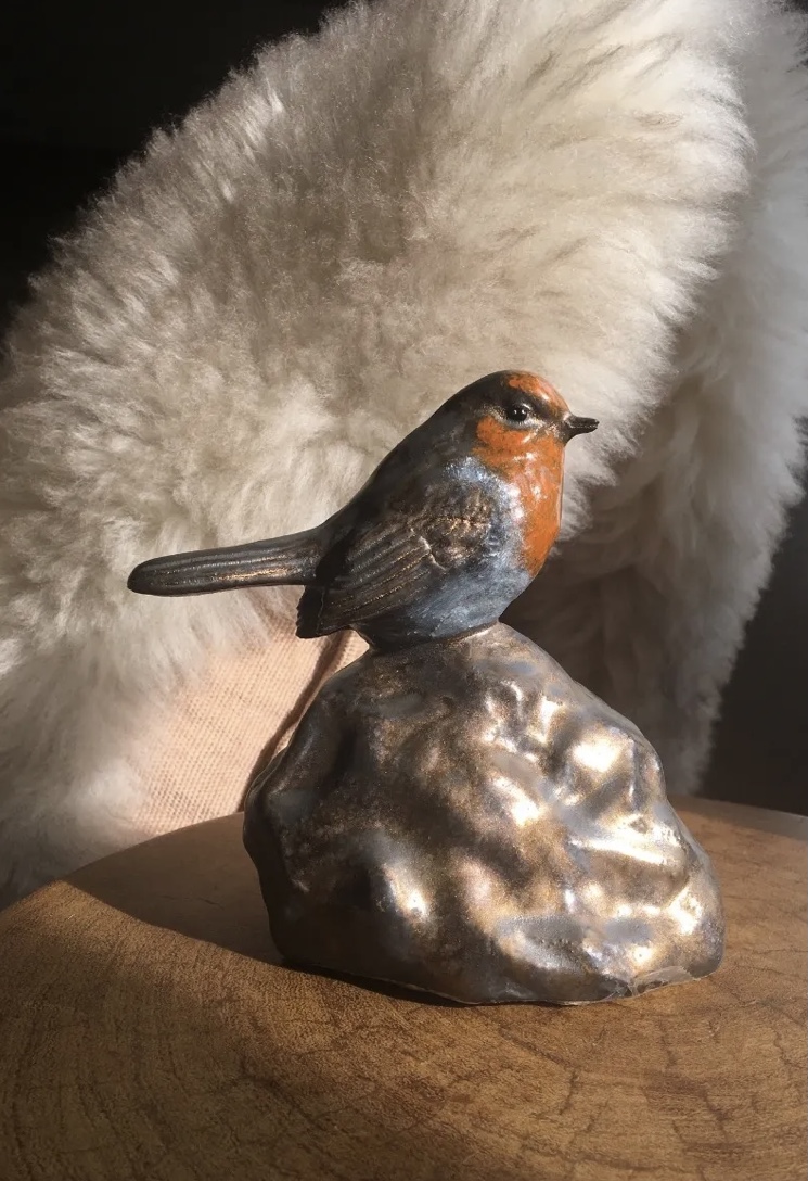 Keramieke mini-urn Red Robin, is met de hand gemaakt, tijdens het boetseren wordt de urn hol opgebouwd, na het boetseren moet de urn ongeveer twee weken drogen. Vervolgens gaat de urn voor de eerste keer in de oven en wordt deze gebakken ´biscuit´ op 980 graden. Na 24 uur afgekoeld te zijn kan de glazuurlaag aangebracht worden.