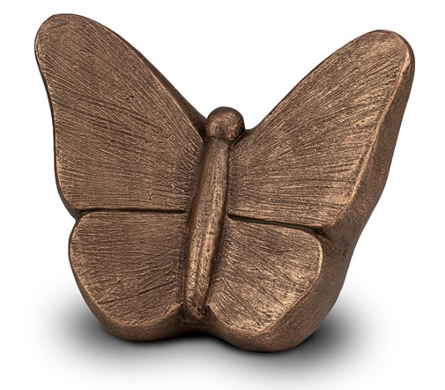 Bij deze urn staat de symboliek van de vlinder centraal. De zorgvuldig uitgewerkte details en de bijzondere bronskleur zorgen ervoor dat deze creatie niet direct herkend wordt als urn, maar als kunstwerk.